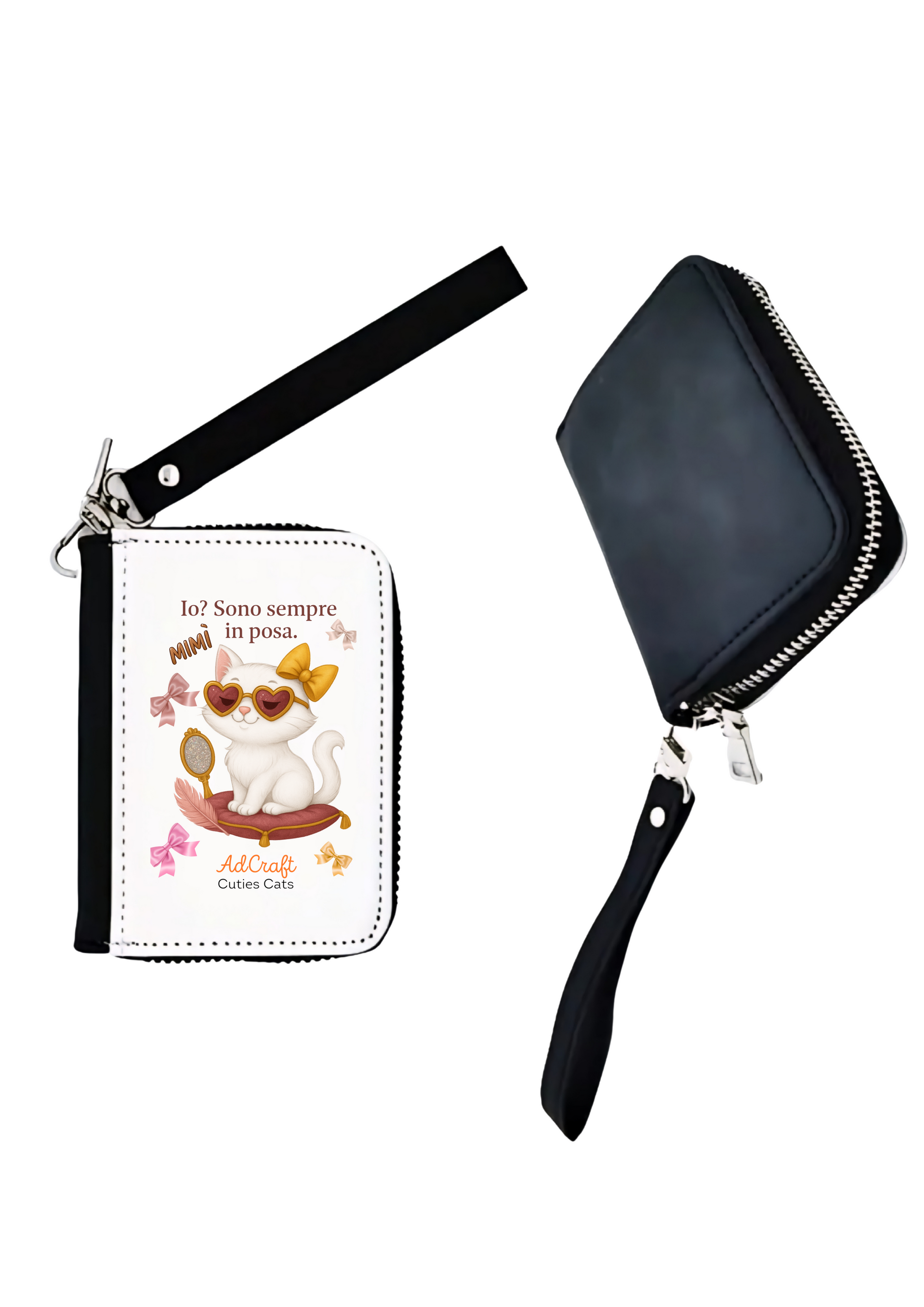 Questo portafoglio con cinturino è pratico, capiente e decorato con la grafica originale firmata AdCraft. Un accessorio tenero ma di carattere, perfetto per chi ama distinguersi in ogni dettaglio.